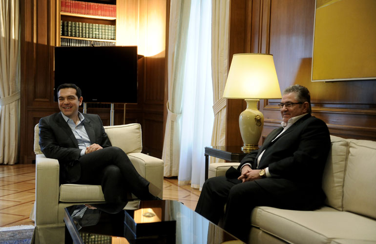Κατ’ ιδίαν συνάντηση είχαν το μεσημέρι της Δευτέρας ο πρωθυπουργός και ο γενικός γραμματέας της Κεντρικής Επιτροπής του ΚΚΕ Δημήτρης Κουτσούμπας στο Μέγαρο Μαξίμου, στο πλαίσιο της ενημέρωσης των πολιτικών αρχηγών από τον Αλέξη Τσίπρα για τις εξελίξεις στο Κυπριακό, εν όψει και της πενταμερούς συνάντησης στη Γενεύη στις 12 Ιανουαρίου.