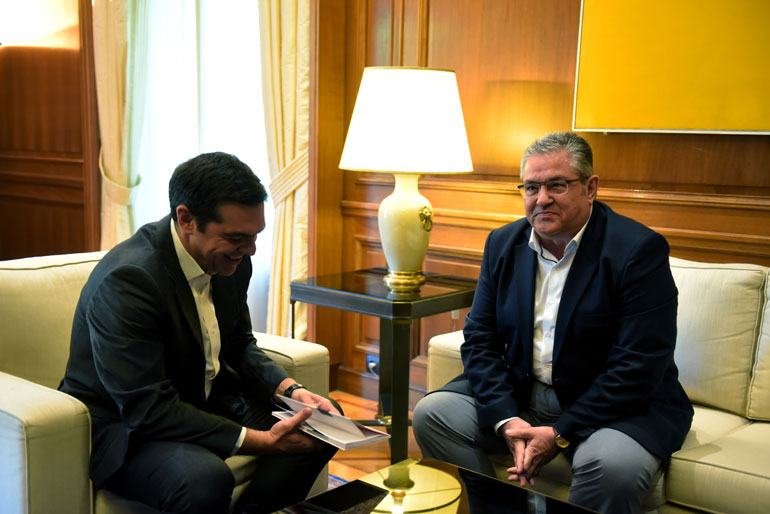 Ολοκληρώθηκε λίγο μετά τις 12.00 το μεσημέρι της Τρίτης η συνάντηση του πρωθυπουργού Αλέξη Τσίπρα με τον γ.γ. της Κ.Ε. του ΚΚΕ Δημήτρη Κουτσούμπα.