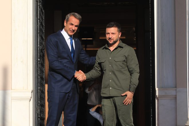 Κοινές δηλώσεις παραχώρησαν ο Πρωθυπουργός Κυριάκος Μητσοτάκης και ο Πρόεδρος της Ουκρανίας, Βολοντίμιρ Ζελένσκι μετά την κατ’ ιδίαν συνάντησή τους.