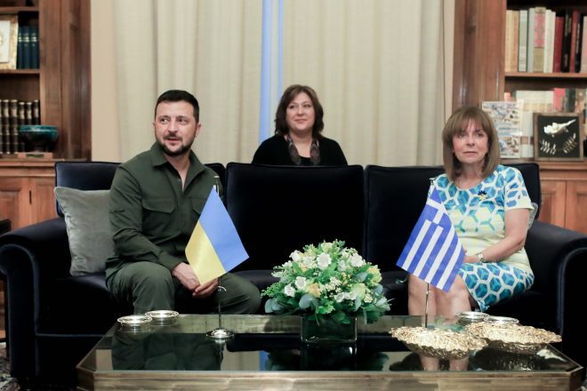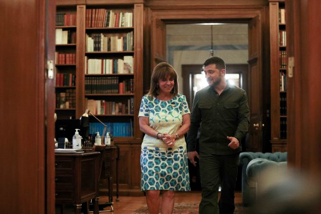 Συνάντηση με την Πρόεδρο της Δημοκρατίας Κατερίνα Σακελλαροπούλου πραγματοποίησε επίσης ο Πρόεδρος της Ουκρανίας στο Προεδρικό Μέγαρο.