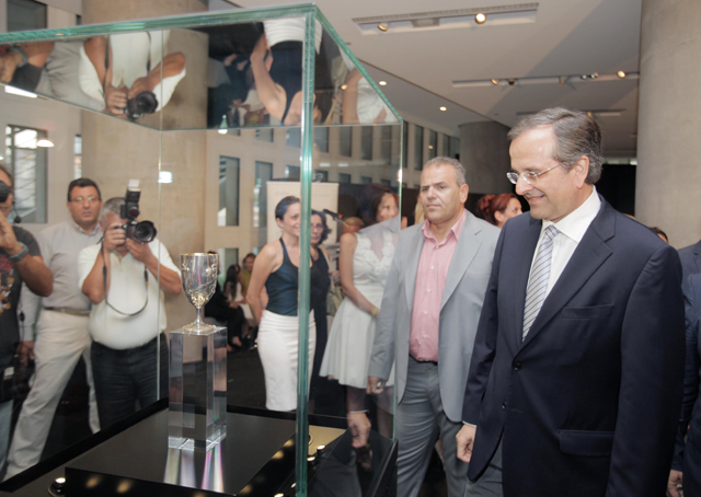 Στο Μουσείο της Ακρόπολης μετέβη ο πρωθυπουργός, Αντώνης Σαμαράς, για τα εγκαίνια της έκθεσης του ασημένιου κυπέλλου του Σπύρου Λούη. Ο κ. Σαμαράς, σε δηλώσεις του απέστειλε μήνυμα αισιοδοξίας για το μέλλον της χώρας.