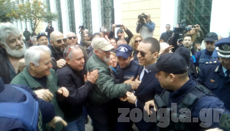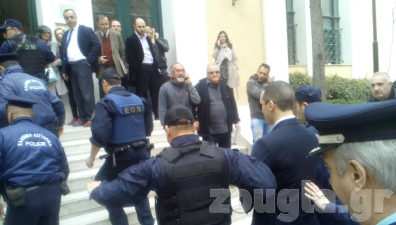 Ο Ηλίας Κασιδιάρης πέρασε το κατώφλι του ανακριτή στις 11.00 το πρωί, ενώ περίπου 100 υποστηρικτές του κόμματος βρίσκονταν έξω από το κτήριο στην Ευελπίδων, προκειμένου να τον υποδεχτούν με χειροκροτήματα και συνθήματα. Για λίγη ώρα επικράτησε ένταση, καθώς ορισμένοι από το συγκεντρωμένο πλήθος εισήλθαν και μέσα στο κτήριο 6.