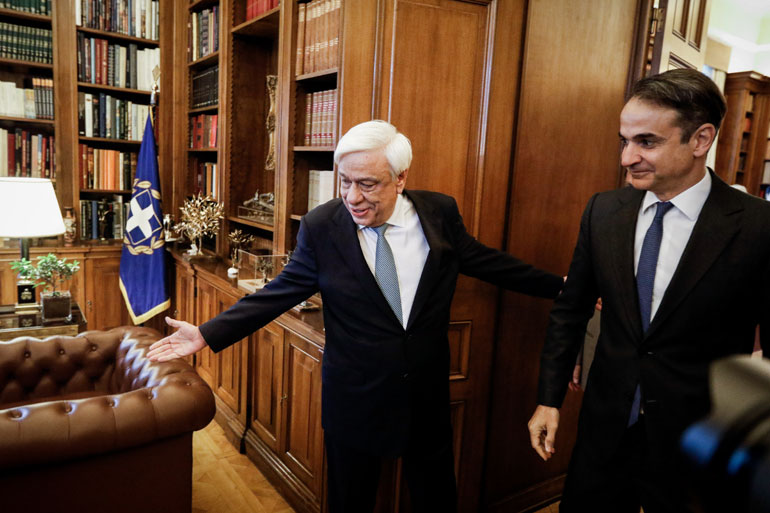 Από τη μεριά του, ο κ. Παυλόπουλος, αφού ευχαρίστησε τον κ. Μητσοτάκη για την ενημέρωση, σημείωσε ότι το Σύνταγμα καθορίζει σαφώς τις αρμοδιότητες του Προέδρου της Δημοκρατίας, τις αρμοδιότητες της Βουλής στα θέματα αυτά και κατέληξε: «Να είστε βέβαιος ότι με πλήρη σεβασμό του Συντάγματος θα πράξω αυτό το οποίο μου αναλογεί, αλλά με πλήρη τήρηση του Συντάγματος».