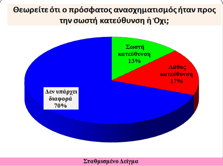 Το πρώτο ερώτημα στο οποίο απάντησαν οι πολίτες αφορούσε στον πρόσφατο ανασχηματισμό της κυβέρνησης. Η πλειοψηφία απάντησε με συντριπτικό ποσοστό (70%) ότι δεν υπάρχει διαφορά.