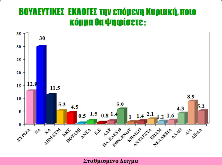 Η ΝΔ με συντριπτικό ποσοστό θα ερχόταν πρώτη στην παράσταση νίκης κερδίζοντας ποσοστό 70,6% έναντι 11,1% του ΣΥΡΙΖΑ.