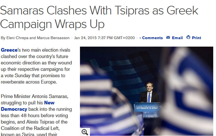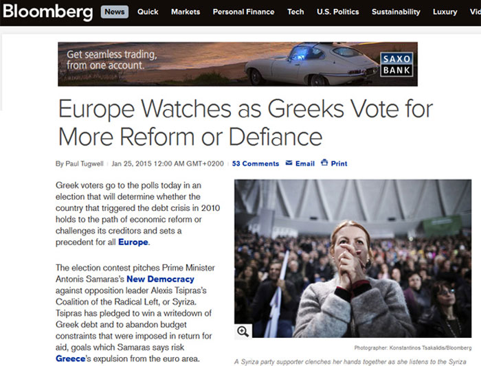 Από τη μεριά του το Bloomberg τονίζει πως η Ευρώπη παρακολουθεί, καθώς οι Έλληνες αποφασίζουν αν θα ακολουθήσουν τον δρόμο των οικονομικών μεταρρυθμίσεων ή αν θα προκαλέσουν τους πιστωτές.