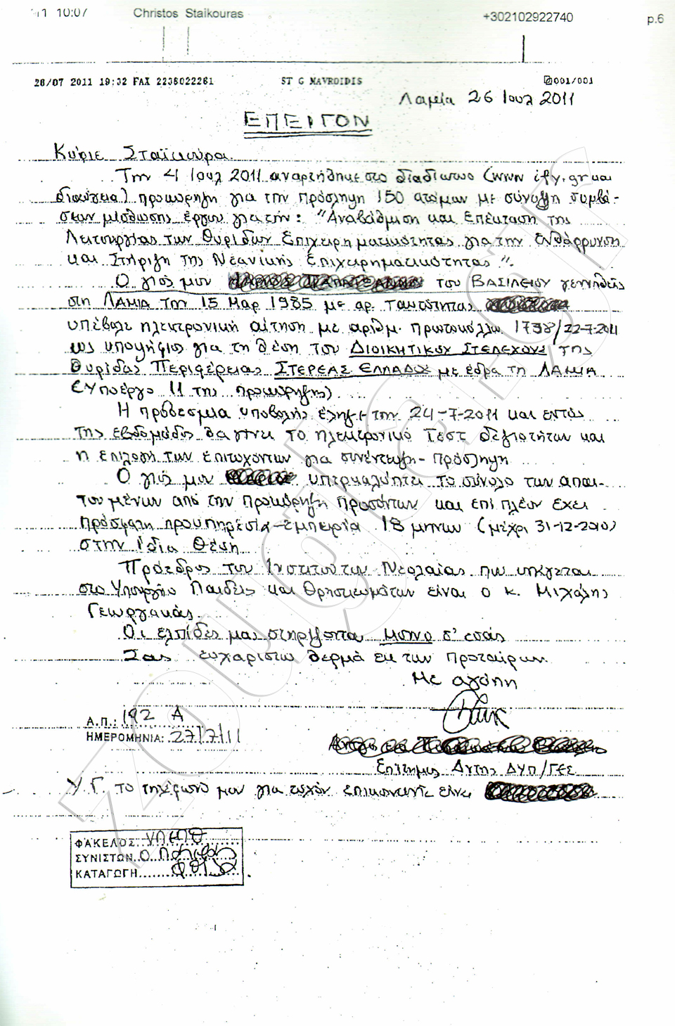 Ο κ. Χρήστος Σταϊκούρας, αναπληρωτής Υπουργός Οικονομικών, από την πρώτη στιγμή που αναμίχθηκε στην πολιτική κληρονομώντας και τον μηχανισμό του πατέρα του στελέχους της Νέας Δημοκρατίας και για χρόνια πολιτικού του νομού Φθιώτιδας, οργάνωσε το πολιτικό του γραφείο στα πρότυπα της παλιάς παλαιοκομματικής νοοτροπίας.