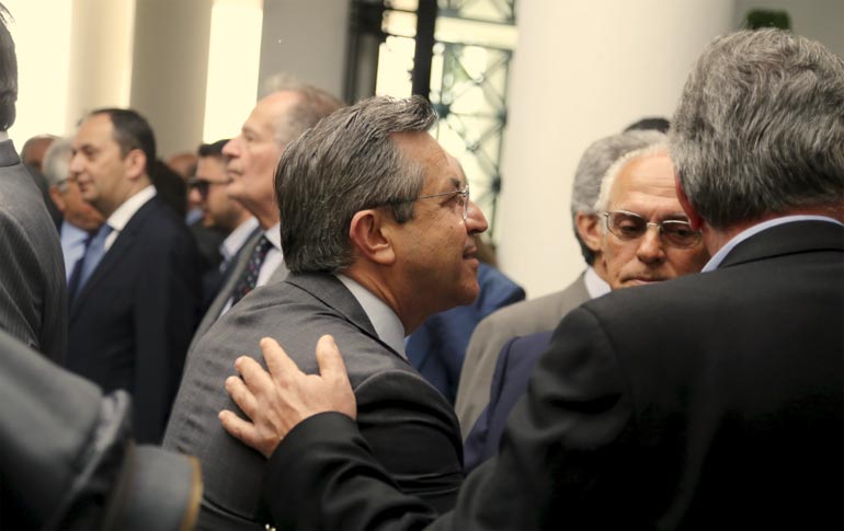 Οι κ.κ. Σαμαράς και Καραμανλής αντάλλαξαν θερμή χειραψία κατά την είσοδό τους. Ντόρα Μπακογιάννη, Γιάννης Βαρβιτσιώτης, Βαγγέλης Μειμαράκης, Νίκος Δένδιας, Κυριάκος Μητσοτάκης, Όλγα Κεφαλογιάννη, Γιάννης Ανδριανός, Τέρενς Κουίκ, Ε. Μπασιάκος, Κ. Αρβανιτόπουλος, Βασίλης Κικίλιας και πολλοί άλλοι έδωσαν το “παρών”.