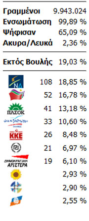 Με καταμετρημένο το 100% των ψήφων από όλα τα εκλογικά κέντρα της χώρας, πρωτοκλασάτα στελέχη των δύο μεγάλων κομμάτων εξουσίας μένουν εκτός Βουλής.