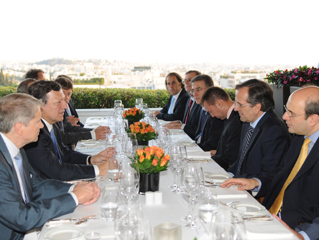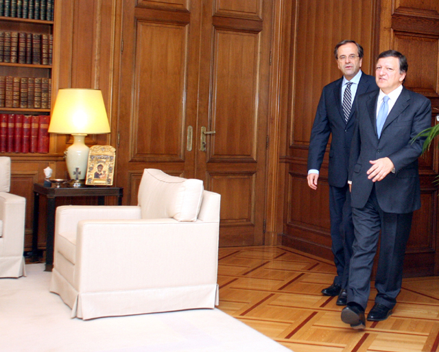 Η πορεία υλοποίησης του προγράμματος δημοσιονομικής προσαρμογής βρέθηκε στο επίκεντρο της συνάντησης του Πρωθυπουργού Αντώνη Σαμαρά με τον πρόεδρο της Κομισιόν Ζοζέ Μανουέλ Μπαρόζο, στο Μέγαρο Μαξίμου. Η συνάντηση ξεκίνησε περίπου στις 17.30 το απόγευμα και ολοκληρώθηκε ένα τέταρτο μετά τις 19.00.
