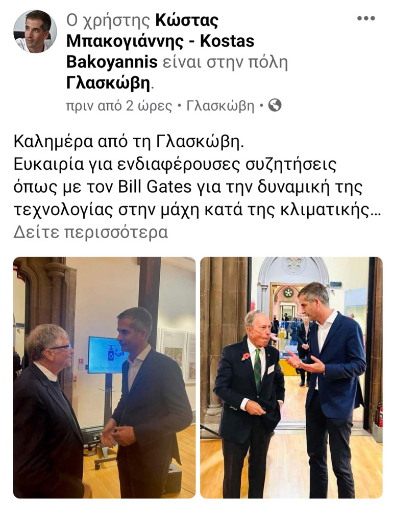 Την «εικόνα της Αθήνας που αλλάζει και της Ελλάδας που ανοίγεται με εντυπωσιακό τρόπο στον κόσμο» μετέφερε ο Δήμαρχος Αθηναίων Κώστας Μπακογιάννης στα τετ α τετ που είχε με τον Bill Gates και τον Mike