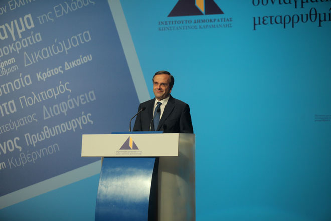 «Η χώρα χρειάζεται ένα κράτος που θα θεραπεύσει τις αδυναμίες του πολιτικού συστήματος, θα εγγυηθεί την ασφάλεια και ευημερία του πολίτη και θα απελευθερώσει τη δημιουργικότητα της χώρας» τόνισε ο κ. Σαμαράς.