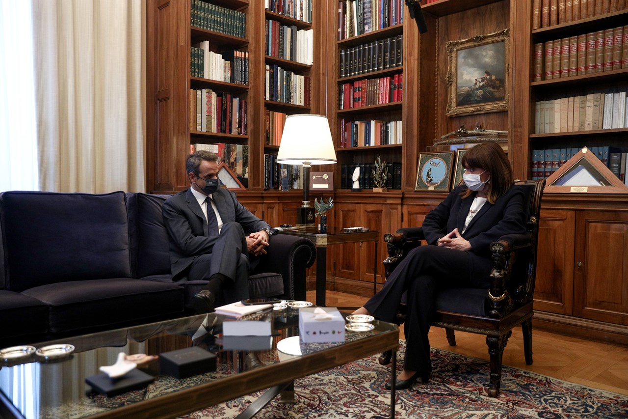 Το διάγγελμα που θα κάνει το απόγευμα στις 19:00 στον ελληνικό λαό προανήγγειλε ο πρωθυπουργός Κυριάκος Μητσοτάκης στη συνάντηση που είχε με την Πρόεδρο της Δημοκρατίας, Κατερίνα Σακελλαροπούλου.