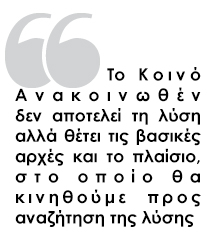«Το Κοινό Ανακοινωθέν δεν αποτελεί τη λύση αλλά θέτει τις βασικές αρχές και το πλαίσιο, στο οποίο θα κινηθούμε προς αναζήτηση της λύσης» είπε μεταξύ άλλων.