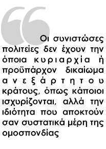 Παράλληλα, απαντώντας στον ισχυρισμό πως «η Κυριαρχία διαιρείται στα τρία και τούτο γιατί στο Κοινό Ανακοινωθέν η μια και μόνη κυριαρχία, όπως αυτή καθορίζεται από τη Χάρτη του ΟΗΕ, θα εκπηγάζει εξίσου από τους Ελληνοκυπρίους και τους Τουκροκυπρίους», διευκρίνισε ότι «δεν εκχωρείται καμιά κυριαρχία χωριστά σε πολίτες που αποτελούν τον λαό ενός κράτους. Εκείνο που θα συμβεί είναι η μετεξέλιξη του σε ομοσπονδία και ως εκ τούτου το δικαίωμα που δίνεται στις δύο κοινότητες δεν είναι κυριαρχικό ή ιδρυτικό, αλλά συντακτικό».
