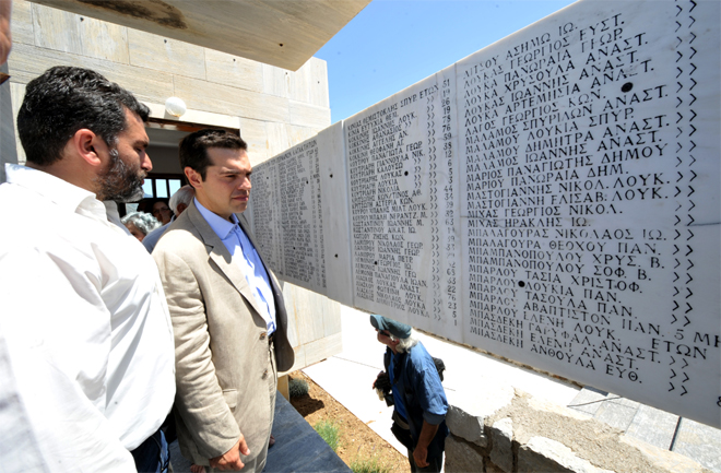 Ιστορικό χρέος χαρακτήρισε ο επικεφαλής του ΣΥΡΙΖΑ, Αλέξης Τσίπρας, τη διεκδίκηση των πολεμικών επανορθώσεων αλλά και του κατοχικού δανείου κατά τις εκδηλώσεις μνήμης για τα 69 χρόνια από τη σφαγή του Διστόμου.