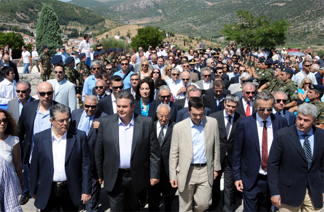 Στις εκδηλώσεις μνήμης που οργανώνονται σήμερα από το Δήμο Διστόμου-Αράχοβας-Αντίκυρας το παρών έδωσαν μεταξύ άλλων ο επικεφαλής της ΚΟ του ΣΥΡΙΖΑ, Αλέξης Τσίπρας, ο γ.γ. του ΚΚΕ, Δ.Κουτσούμπας, ο πρόεδρος των Ανεξάρτητων Ελλήνων, Πάνος Καμμένος.