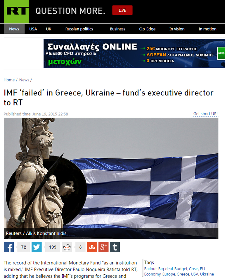 Διαβάστε επίσης: Στις αποτυχίες του ΔΝΤ στην Ουκρανία και στην Ελλάδα αναφέρθηκε ο Paulo Nogueira Batista Πρώτη καταχώρηση: Σάββατο, 20 Ιουνίου 2015, 10:34