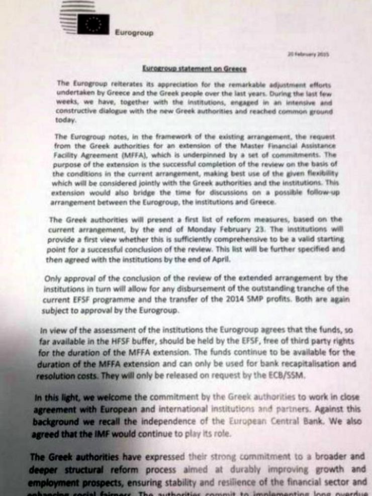 Σε συμφωνία για τετράμηνη παράταση της δανειακής σύμβασης της Ελλάδας μέχρι τον Ιούνιο, κατέληξε το Eurogroup....