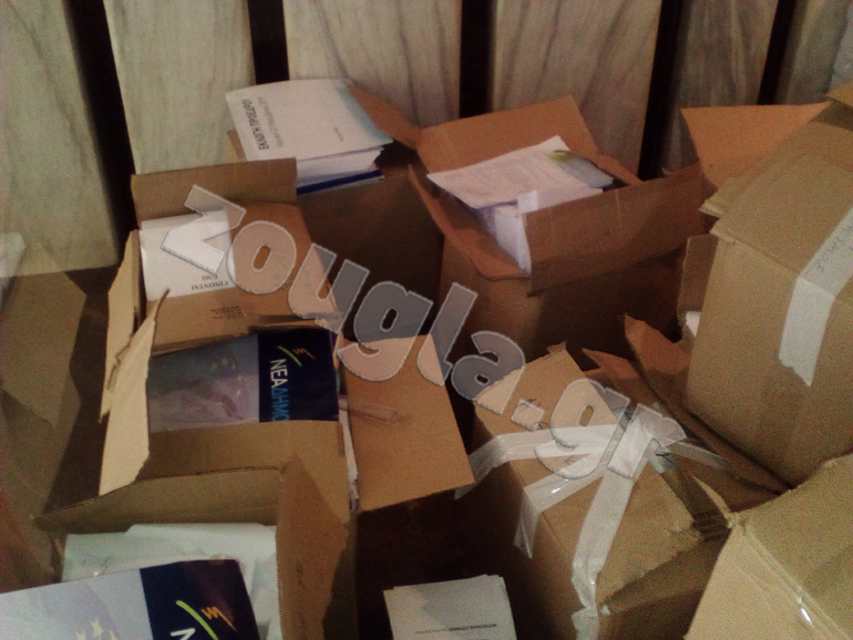 Στα γραφεία της Νέας Δημοκρατίας στη Θεσσαλονίκη, επί της οδού Μητροπολίτου Ιωσήφ, επέστρεψε το προεκλογικό υλικό μετά την αναβολή της διαδικασίας.