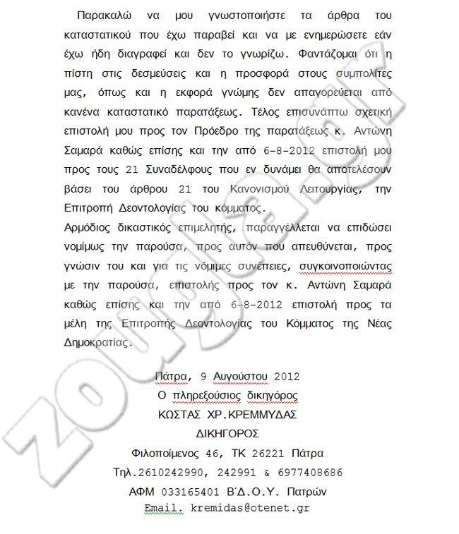 Διαβάστε επίσης: Εξώδικο στον Αντώνη Σαμαρά