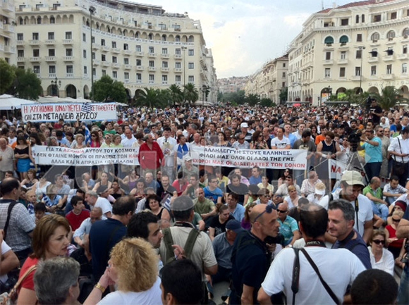 Και μετά ήρθε η ώρα του λαού. Πρώτα στα Προπύλαια στην Αθήνα με τους 50.000 Αθηναίους και τώρα στην πλατεία Αριστοτέλους, στη λαομάνα Θεσσαλονίκη». Με αυτά τα λόγια ξεκίνησε την ομιλία του, κατά τη διάρκεια της οποίας άφησε αιχμές κατά του Γιάννη Μπουτάρη, σχετικά με το veto που είχε ασκήσει για τη χρήση της πλατείας στη συγκεκριμένη εκδήλωση.
