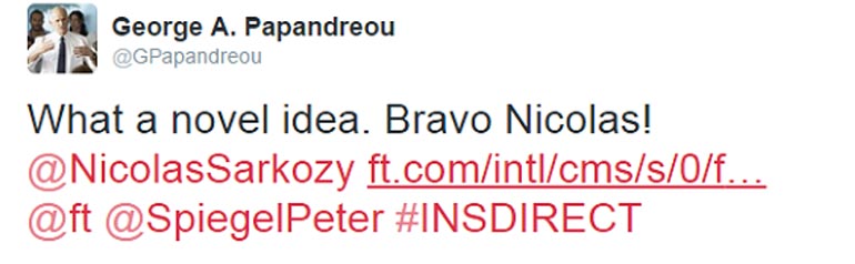 Με το ζήτημα ενός ελληνικού δημοψηφίσματος να βρίσκεται στο ευρωπαϊκό προσκήνιο ο πρώην πρόεδρος της Γαλλίας Νικολά Σαρκοζί εξέφρασε μέσω twitter την άποψή του επί του θέματος.