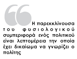 Η παρεκκλίνουσα του φυσιολογικού συμπεριφορά ενός πολιτικού είναι λεπτομέρεια την οποία έχει δικαίωμα να γνωρίζει ο πολίτης.