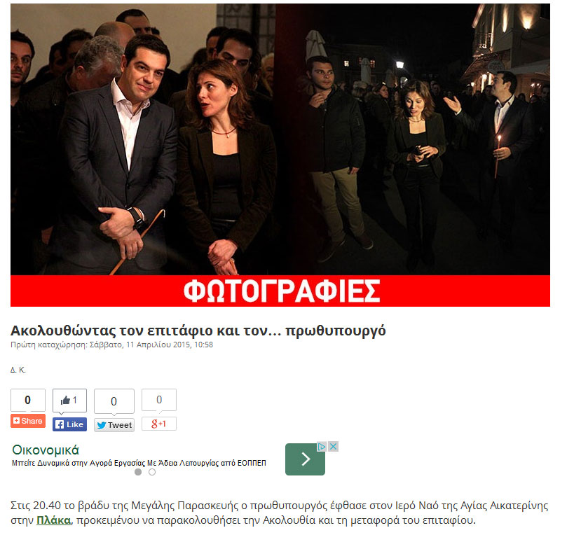 «Ελληνίδες, Έλληνες, Η φετινή Ανάσταση είναι ξεχωριστή. Φέρνει μαζί της την αναγέννηση της ελπίδας του λαού μας για ένα καλύτερο αύριο. Ένα αύριο που ήδη έχει κάνει τα πρώτα του βήματα. Αυτή είναι η δική μας Ανάσταση. Είναι η Ανάσταση όλων μας, που έχουμε πάρει την απόφαση να σταθούμε όρθιοι, να κοιτάξουμε ψηλά και, ενωμένοι, να ξεπεράσουμε τις δυσκολίες της συγκυρίας.