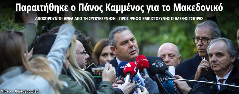 Προσκλητήριο προς πολιτικούς και πολίτες που ανήκουν στον πατριωτικό χώρο κήρυξε ο Πάνος Καμμένος σε συνέντευξη Τύπου αμέσως μετά τη συνάντησή του με τον πρωθυπουργό Αλέξη Τσίπρα στο Μέγαρο Μαξίμου όπου και υπέβαλε την παραίτησή του.