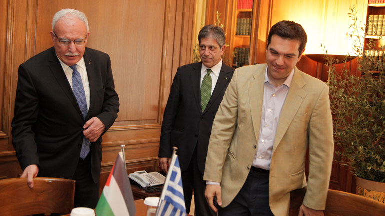 Σε πολύ καλό κλίμα πραγματοποιήθηκε το απόγευμα της Δευτέρας η συνάντηση του πρωθυπουργού Αλέξη Τσίπρα με τον υπουργό Εξωτερικών της Παλαιστίνης Ριάντ αλ Μάλκι.