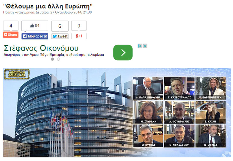 Δείτε τις συνεντεύξεις των υπόλοιπων ευρωβουλευτών όλων των κομμάτων από την αποστολή που πραγματοποίησε το zougla.gr τον Οκτώβριο του 2014: