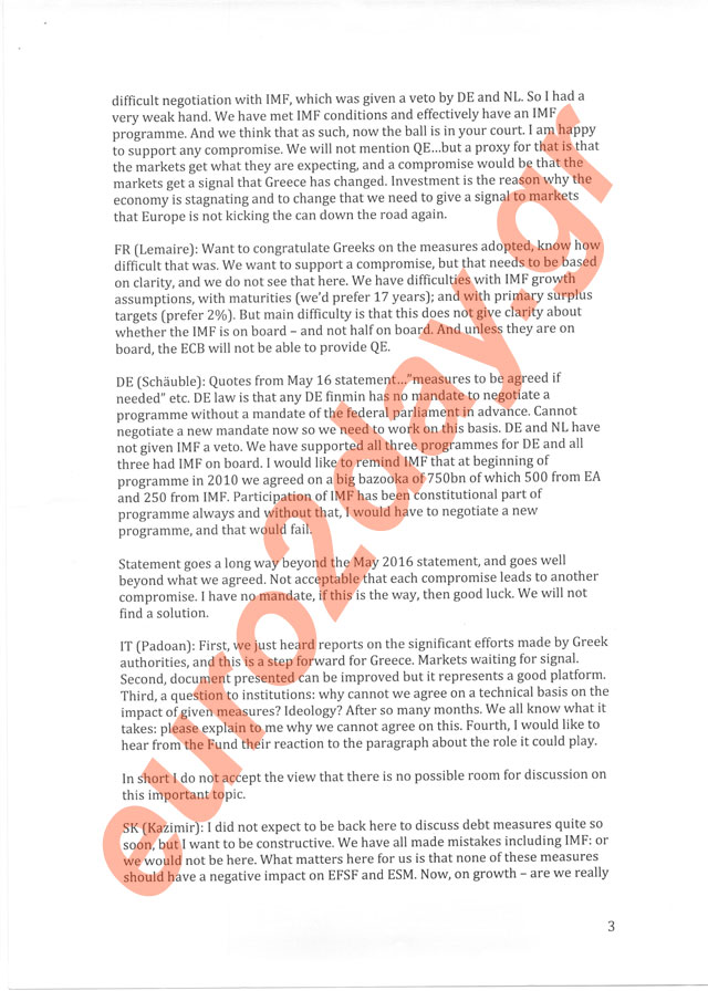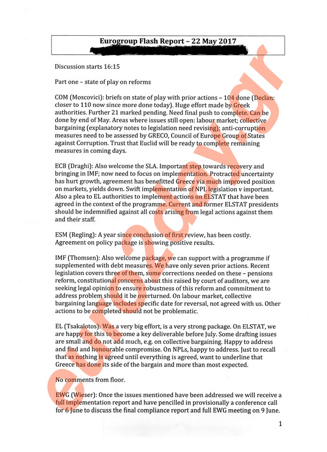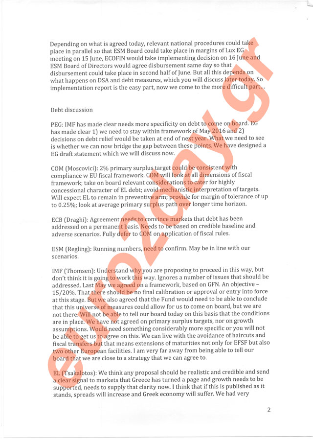 Αποσπάσματα από τα πρακτικά του Eurogroup όπως δημοσιεύθηκαν στο euro2day.gr: