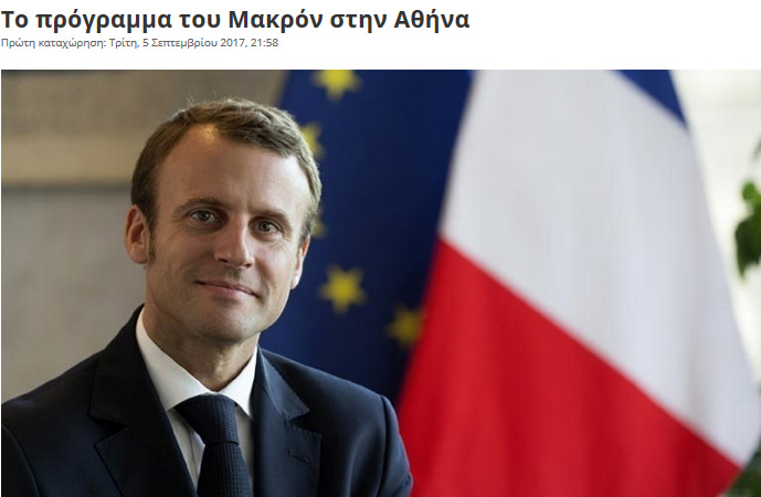 Ο Γάλλος πρόεδρος και η σύζυγός του Μπριζίτ θα επισκεφθούν επίσημα την Αθήνα στις 7 και 8 Σεπτεμβρίου και οι Έλληνες ελπίζουν πολλά από αυτό. Πέρα από την περιήγηση στον ιερό βράχο, στο Μουσείο Ακροπόλεως και στην Αρχαία αγορά, η επίσκεψη του προεδρικού ζεύγους της Γαλλίας είναι καθοριστική για την Αθήνα. Παρότι γίνεται πριν από τις γερμανικές εκλογές της 24ης Σεπτεμβρίου, η Αθήνα υπολογίζει στη βοήθεια του Παρισιού για να ζητηθεί στις γερμανικές Αρχές ελάφρυνση του ελληνικού χρέους (180% του ΑΕΠ).
