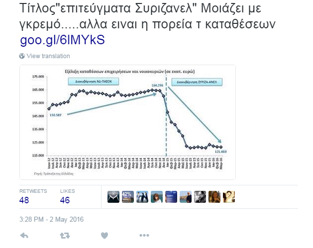 Μέσω Twitter ασκεί κριτική στην οικονομική πολιτική της κυβέρνησης ο Γιάννης Βρούτσης. Ο βουλευτής Κυκλάδων της Νέας Δημοκρατίας ανέβασε ένα μήνυμα με τίτλο «Επιτεύγματα Συριζανελ» μαζί μ’ ένα γράφημα, στο οποίο φαίνεται ξεκάθαρα η μαζική απόσυρση καταθέσεων από τις ελληνικές τράπεζες τον τελευταίο 1,5 χρόνο.