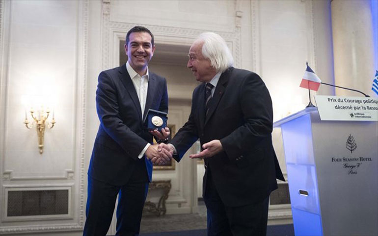 «Στον ελληνικό λαό ανήκει το βραβείο αυτό και εγώ το παραλαμβάνω στο όνομά του». Με τα λόγια αυτά ο Έλληνας πρωθυπουργός παρέλαβε το βραβείο «Πολιτικού σθένους», που του απένειμε το πρωί της Πέμπτης ο Πατρίκ Βάσμαν, ιδρυτής του περιοδικού «Politique Internationale», ύστερα από μια παρουσίαση της κυβερνητικής του δράσης.