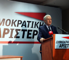 Στις 5 Ιουνίου 2010 σε ομιλία του στο Συνέδριο του Συνασπισμού ανακοίνωσε, ως επικεφαλής της Ανανεωτικής Πτέρυγας, την αποχώρηση αυτού και των μελών της από το κόμμα. Πέντε μέρες αργότερα ανεξαρτητοποιήθηκε μαζί με τους Θανάση Λεβέντη, Γρηγόρη Ψαριανό και Νίκο Τσούκαλη. Στις 18 Ιουνίου ορίστηκε εκπρόσωπος στη Διάσκεψη των Προέδρων της πολυκομματικής ομάδας των ανεξάρτητων βουλευτών. Λίγες μέρες αργότερα ανακοίνωσε την ίδρυση νέου κόμματος με την ονομασία Δημοκρατική Αριστερά. Στις 10 Ιουλίου 2010 εξελέγη αρχηγός, χωρίς να υπάρχει άλλος υποψήφιος, της Δημοκρατικής Αριστεράς από το πρώτο συνέδριο του κόμματος.
