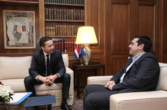 Δεκτός από τον πρωθυπουργό Αλέξη Τσίπρα έγινε ο επικεφαλής του Eurogroup, ο οποίος βρίσκεται στην Αθήνα στο πλαίσιο επαφών του με αξιωματούχους της ελληνικής κυβέρνησης. Σε μια κίνηση που προκάλεσε αίσθηση και συζητήθηκε έντονα, τον Γερούν Ντάισελμπλουμ υποδέχτηκε στην είσοδο του Μεγάρου Μαξίμου ο αντιπρόεδρος της κυβέρνησης Γιάννης Δραγασάκης και όχι ο ίδιος ο πρωθυπουργός, όπως συνέβη μία ημέρα νωρίτερα με τον Μάρτιν Σουλτς.