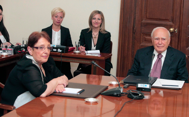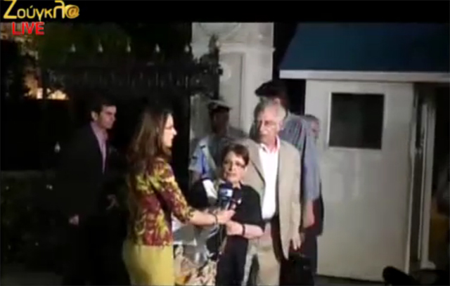 Στις 21.11 ολοκληρώθηκε η συνάντηση του Προέδρου της Δημοκρατίας Κάρολου Παπούλια με τη γενική γραμματέα του ΚΚΕ Αλέκα Παπαρήγα η οποία παραθέτει δηλώσεις στην πύλη του Προεδρικού Μεγάρου.