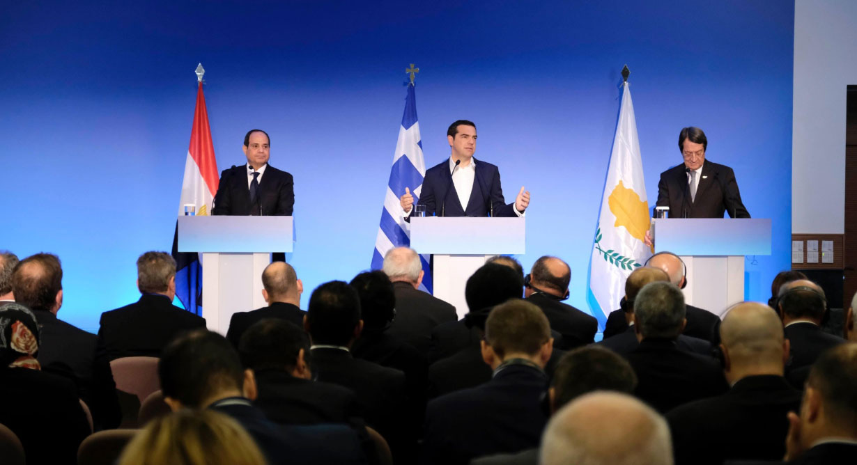 «Στηρίζουμε την Κύπρο στην αξιοποίηση της ΑΟΖ έναντι οποιασδήποτε απειλής τρίτης χώρας. Εκφράσαμε σαφώς τη στήριξή μας στην Κύπρο, στην προσπάθειά της να αξιοποιήσει τα κυριαρχικά δικαιώματα που απορρέουν από το διεθνές δίκαιο σε ό,τι αφορά την ΑΟΖ της, έναντι οποιασδήποτε απειλής τρίτης χώρας και τονίσαμε τη σημασία που έχει η εξόρυξη αυτή για όλο τον κυπριακό λαό, Ελληνοκύπριους και Τουρκοκύπριους» δήλωσε ο πρωθυπουργός, Αλέξης Τσίπρας, μετά την ολοκλήρωση των εργασιών της 6ης Συνόδου Κορυφής Ελλάδας-Κύπρου-Αιγύπτου.