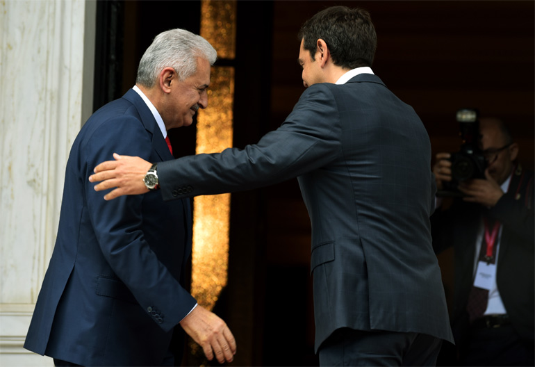 Με κύρια θέματα το Κυπριακό, τις σχέσεων των Ελλάδας – Τουρκίας αλλά και τις ευρωτουρκικές σχέσεις πραγματοποιήθηκε η συνάντηση του Αλέξη Τσίπρα και του Τούρκου ομολόγου του Μπιναλί Γιλντιρίμ στο Μέγαρο Μαξίμου τη Δευτέρα. Ο Αλ. Τσίπρας τόνισε πως η τουρκική παραβατικότητα δεν μπορεί να συνεχιστεί και συμπλήρωσε πως η ελληνική Δικαιοσύνη έχει αποφασίσει ήδη για την τύχη των οκτώ Τούρκων στρατιωτών με τον Μπ. Γιλντιρίμ να του απαντά πως «και η Ελλάδα προκαλεί» και να ζητά την επιστροφή των οκτώ στη χώρα του άμεσα.