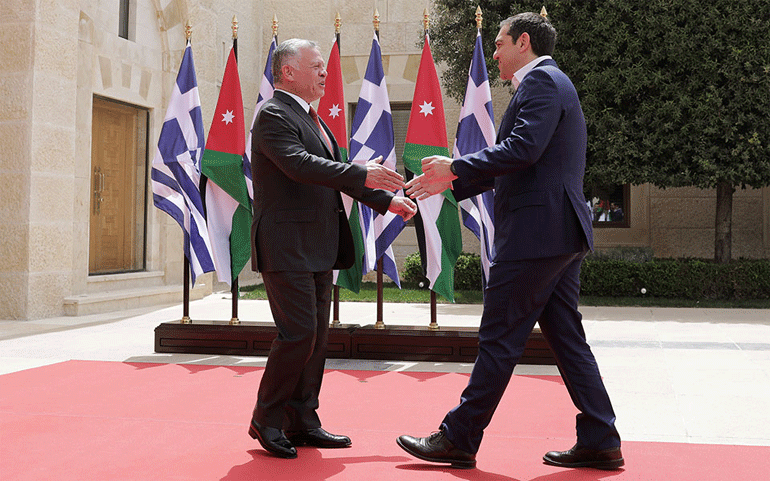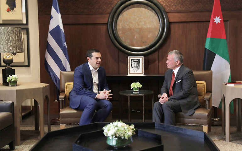 Στη διάρκεια της συνάντησης που είχε με τον βασιλιά της Ιορδανίας, Αμπντάλα Β΄, σύμφωνα με κυβερνητικές πηγές, ο κ. Τσίπρας εξήρε τη συμβολή της Ιορδανίας και προσωπικά του βασιλιά στην αντιμετώπιση περιφερειακών προβλημάτων.