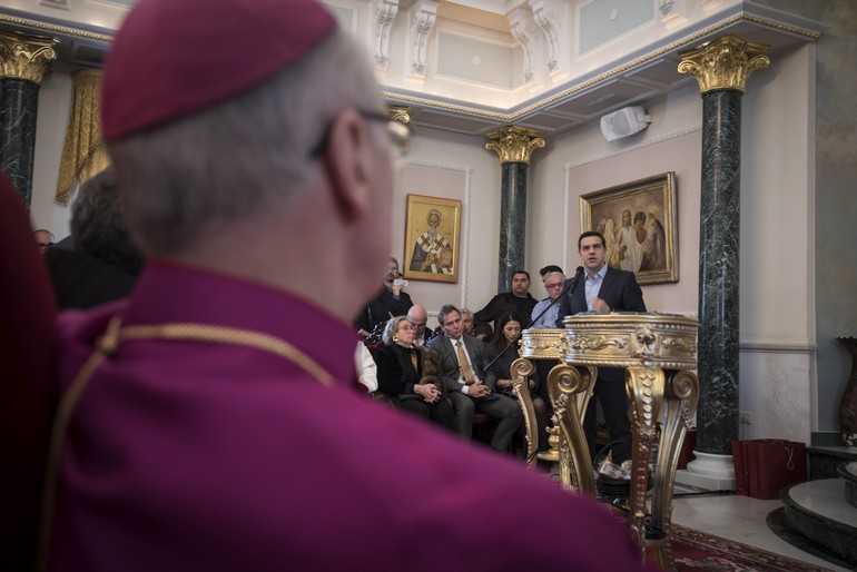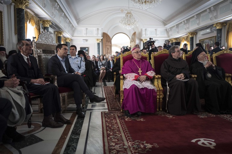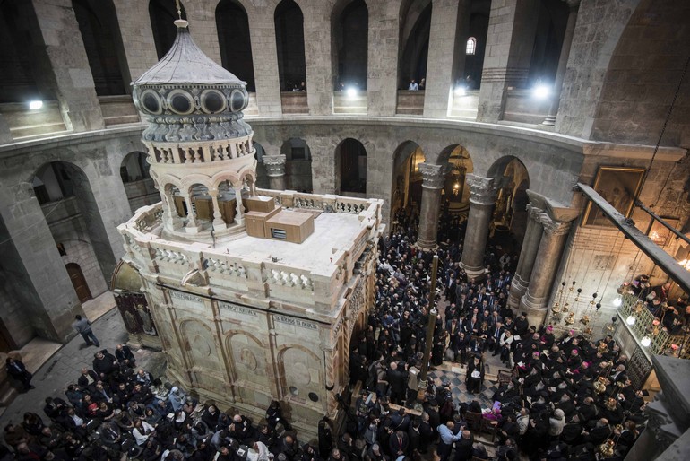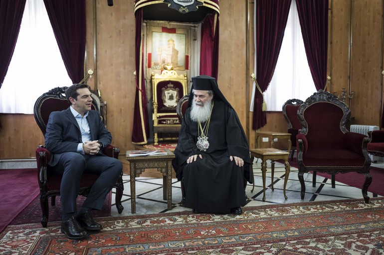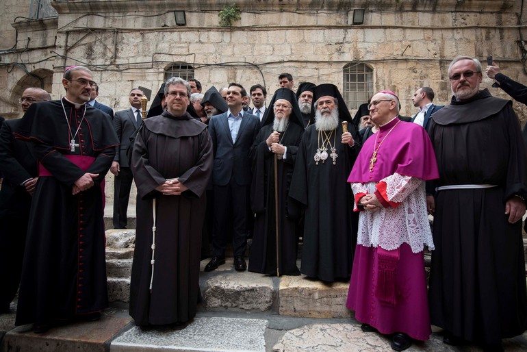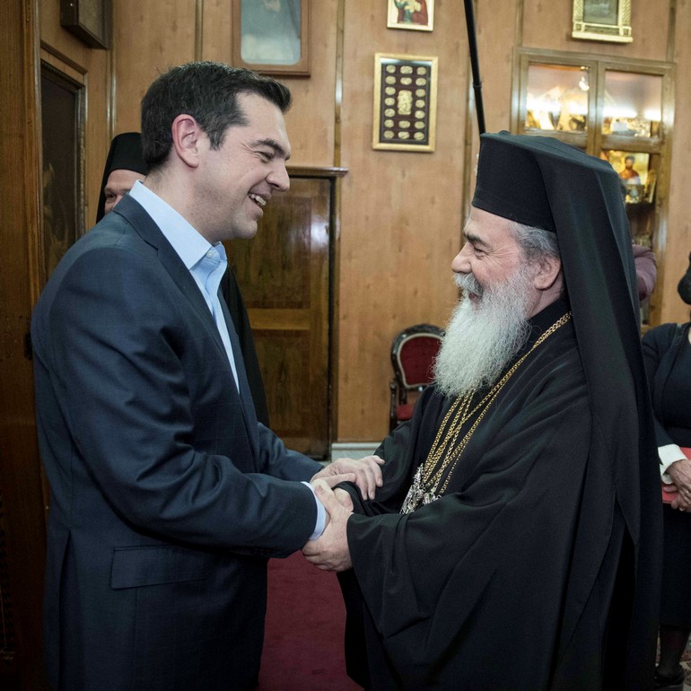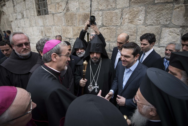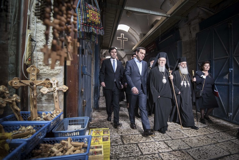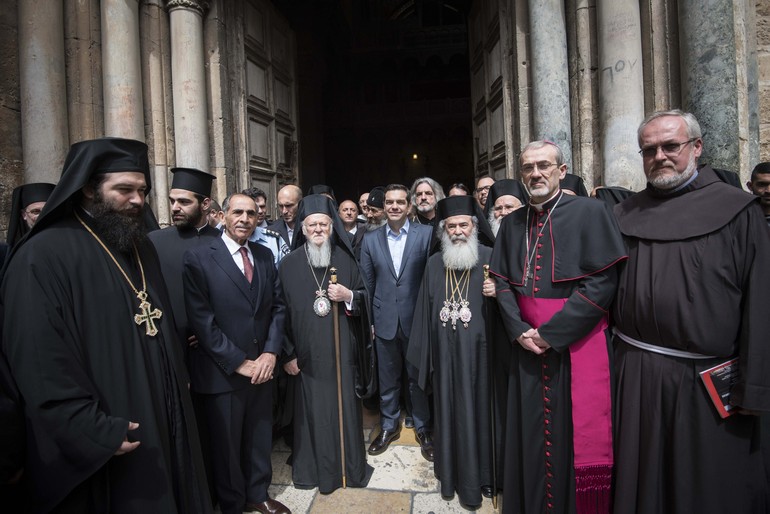 Κορυφαίο μήνυμα συνύπαρξης των τριών χριστιανικών κοινοτήτων στους Αγίους Τόπους είναι η αποκατάσταση του Ιερού Κουβουκλίου του Πανάγιου Τάφου, τόνισε ο πρωθυπουργός Αλέξης Τσίπρας, μιλώντας στο Πατριαρχείο Ιεροσολύμων, έπειτα από την παρουσίαση του έργου αποκατάστασης του Ιερού Κουβουκλίου.