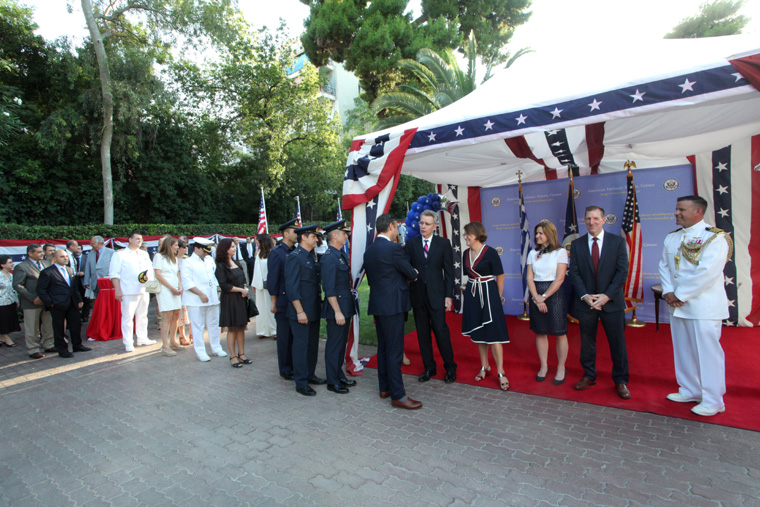 Με την ερμηνεία των εθνικών ύμνων της Ελλάδας και των ΗΠΑ από λυρική καλλιτέχνιδα άρχισε χθες το βράδυ στην κατοικία του Αμερικανού πρέσβη στην Αθήνα, η εκδήλωση για τον εορτασμό της 242ης επετείου της 4ης Ιουλίου, Ημέρας Ανεξαρτησίας των Η.Π.Α.