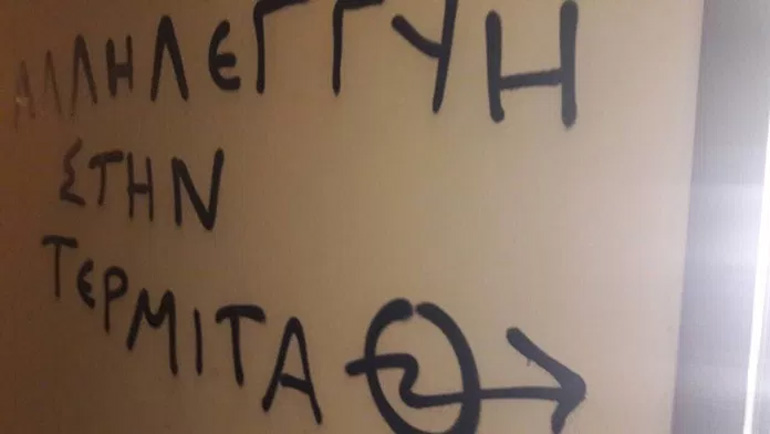Οι άγνωστοι έγραψαν συνθήματα με μπογιές έξω από το γραφείο του Λαρισαίου πολιτικού.