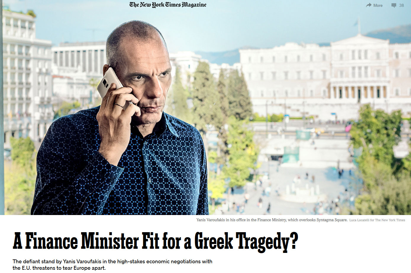 Στο δημοσίευμα με τίτλο «Ένας υπουργός Οικονομικών βγαλμένος από ελληνική τραγωδία;», ο κ. Βαρουφάκης δηλώνει ότι γνωρίζει πότε πρέπει να αποχωρήσει από το πόστο του υπουργού, καθώς δεν πρόκειται να γελοιοποιηθεί, συμβιβαζόμενος σε επίπεδο αρχών και λογικής.