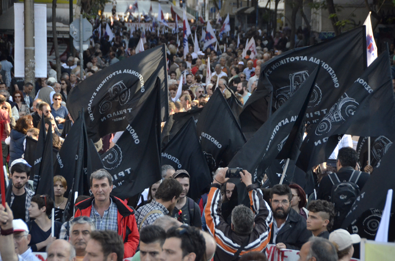 Μαζί τους βρέθηκαν και οι αγρότες που ανταποκρίθηκαν στο κάλεσμα της Πανελλαδικής Επιτροπής Μπλόκων για συμμετοχή στο «παναγροτικό-παλλαϊκό συλλαλητήριο». Οι αγρότες σημειώνουν ότι ενώνονται για δεύτερη φορά «με τα αδέλφια μας, τους εργατοϋπαλλήλους και τον λαό της Αθήνας», ενώ κάνουν λόγο για μεθόδευση της συγκυβέρνησης ΣΥΡΙΖΑ-ΑΝΕΛ, «που σαν τον εγκληματία αποφάσισε να φέρει το νομοσχέδιο για ψήφιση στη Βουλή μέσα στο Σαββατοκύριακο».