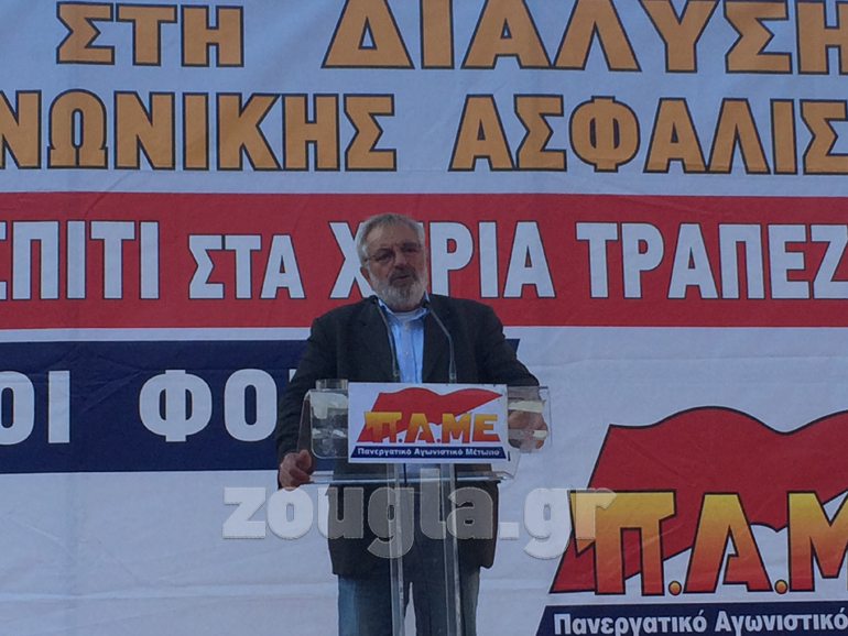 «Δίνουμε αγώνα για να μην περάσει ο νόμος-λαιμητόμος για το Ασφαλιστικό, το νέο φορολογικό! Δε συμβιβαζόμαστε με την εξαθλίωση, την ανέχεια, τη νέα σφαγή στη ζωή μας!», αναφέρει σε σχετική του ανακοίνωση.