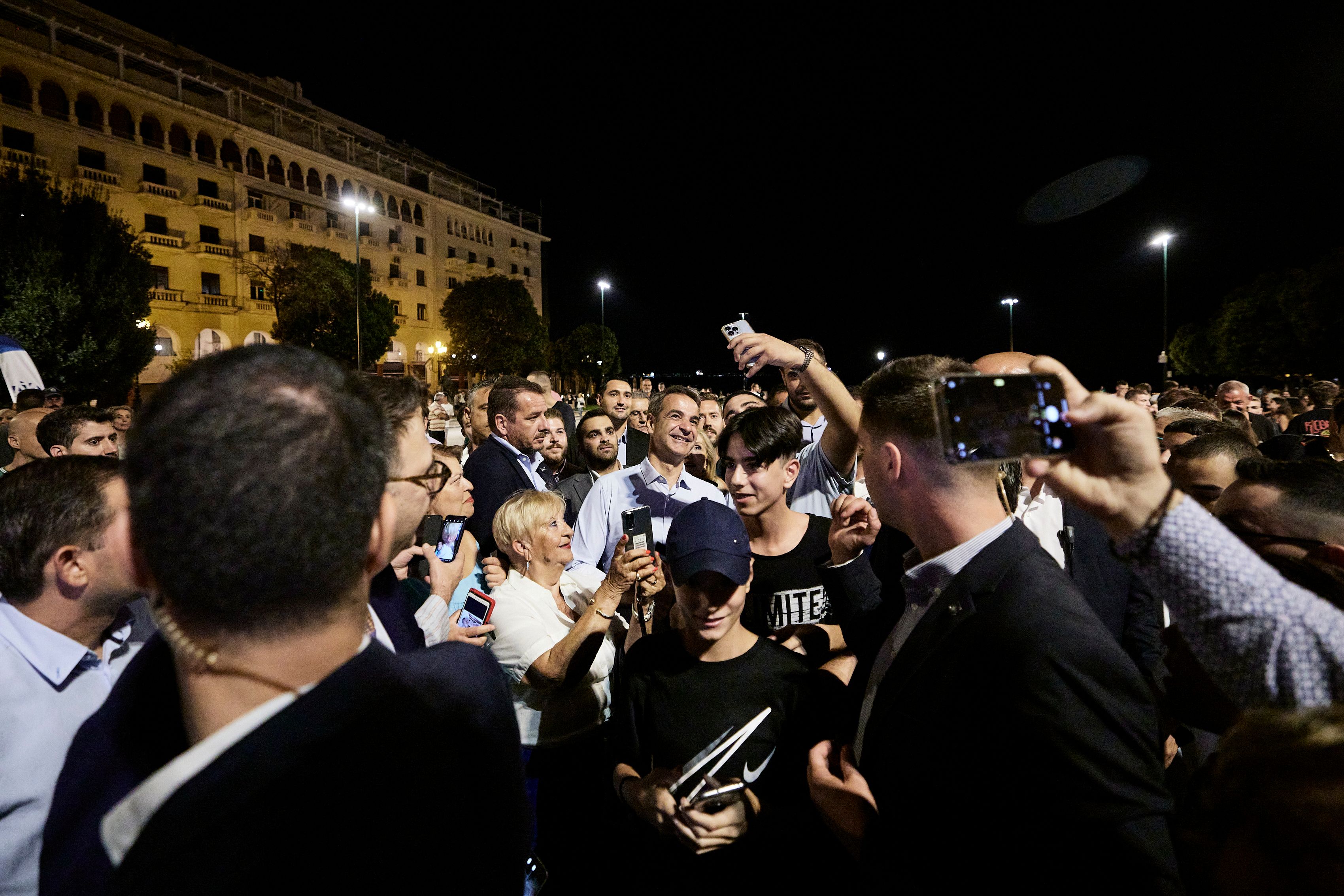 Βόλτα στην πλατεία Αριστοτέλους έκανε ο πρωθυπουργός Κυριάκος Μητσοτάκης, ο οποίος είχε την ευκαιρία να ανταλλάξει χειραψίες με περαστικούς και να συνομιλήσει μαζί τους.