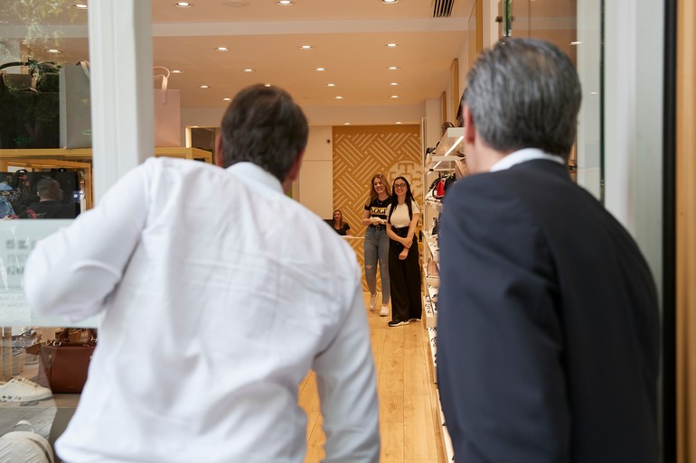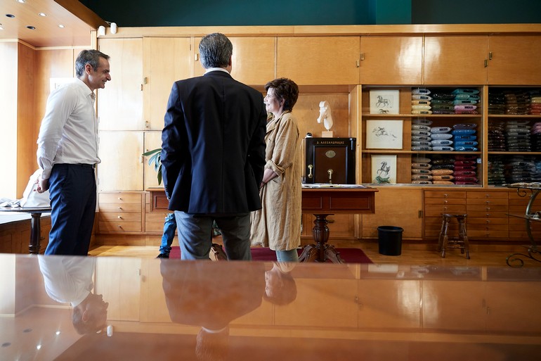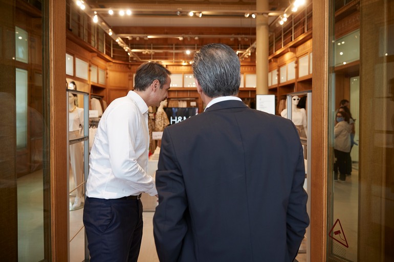 Τον πρωθυπουργό συνόδευσε ο πρόεδρος του Εμπορικού Συλλόγου Αθηνών Σταύρος Καφούνης.